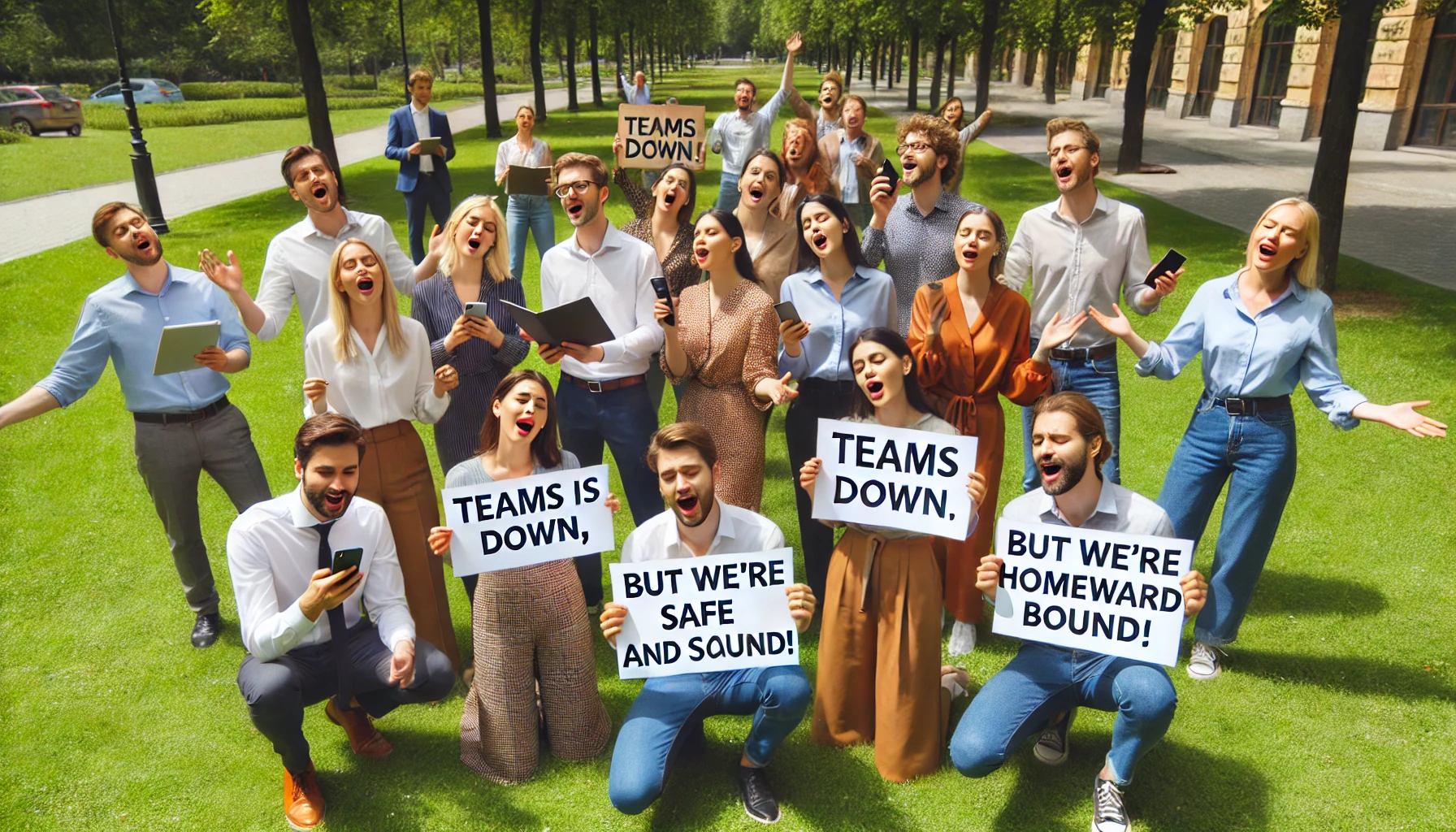 When asked about the potential impact on productivity, Kurtz said that the benefits of increased security far outweigh any temporary loss of productivity. "The reality is that most organizations are not actively using their Windows machines over the weekend, so the impact on productivity should be minimal. No one can get phished if they're not able to log into their work email, right?" he said. He also pointed to the people dancing in the streets and strolling arm in arm singing "Teams is down, but we're safe and sound! Teams is down, we're homeward bound!" as evidence of the positive impact of the new feature.